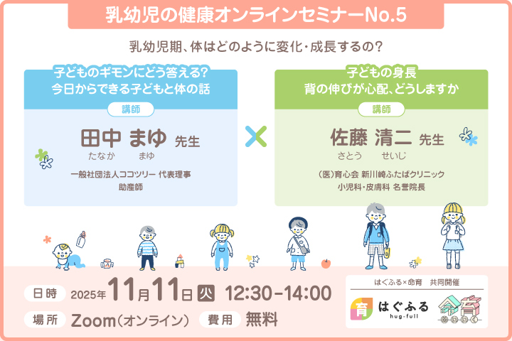 本セミナーは、子育て情報WEBサイト「はぐふる」様主催の「乳幼児の健康オンラインセミナー」第5回目として、性教育のWEBサイト「命育」様と共同で開催されます 。